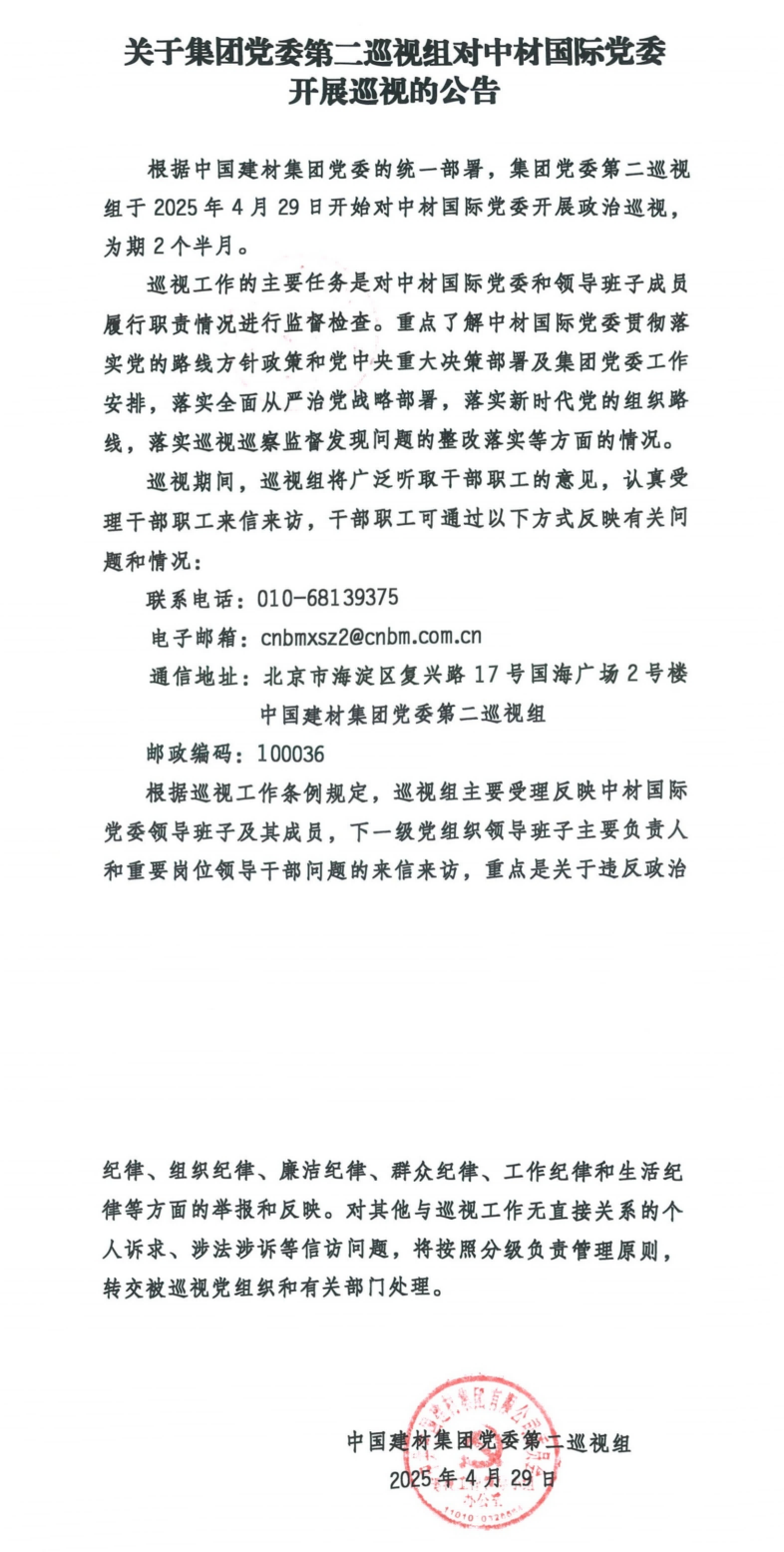 关于集团党委第二巡视组对凯发k8一触即发党委 开展巡视的公告
